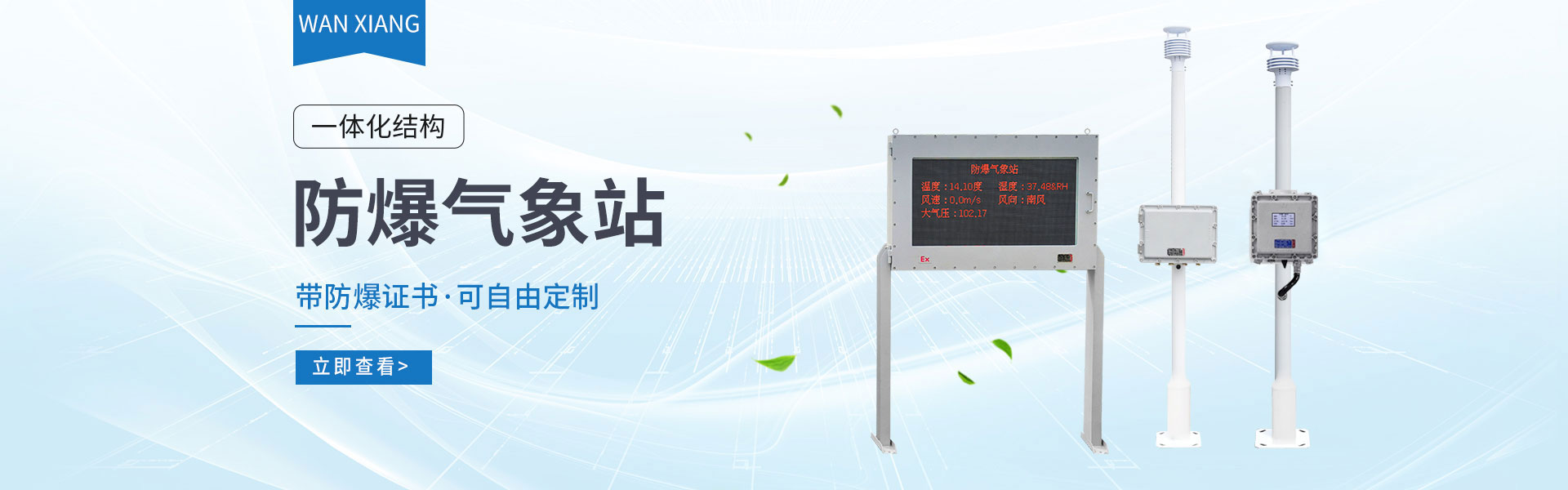 山東萬(wàn)象環(huán)境科技有限公司官網(wǎng)主要產(chǎn)品有防爆氣象站,校園氣象站,農(nóng)業(yè)氣象站,負(fù)氧離子監(jiān)測(cè)站,超聲波氣象站,歡迎咨詢(xún)13276362033!